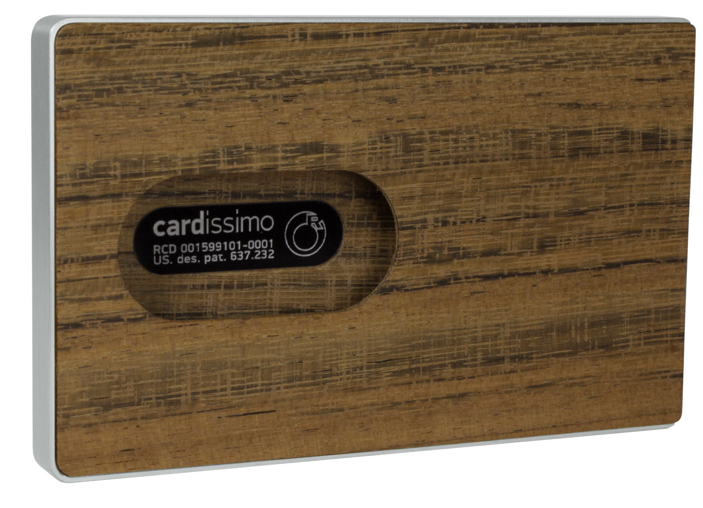 The CARDISSIMO Hardwood Card Case in Amazaque features an elegant new design that allows the holder to take out a card with just a slide of the thumb.